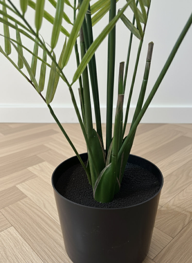 While a real Areca demands bright, indirect light, our faux version thrives effortlessly in any corner—from a dimly lit hallway to a north-facing office.