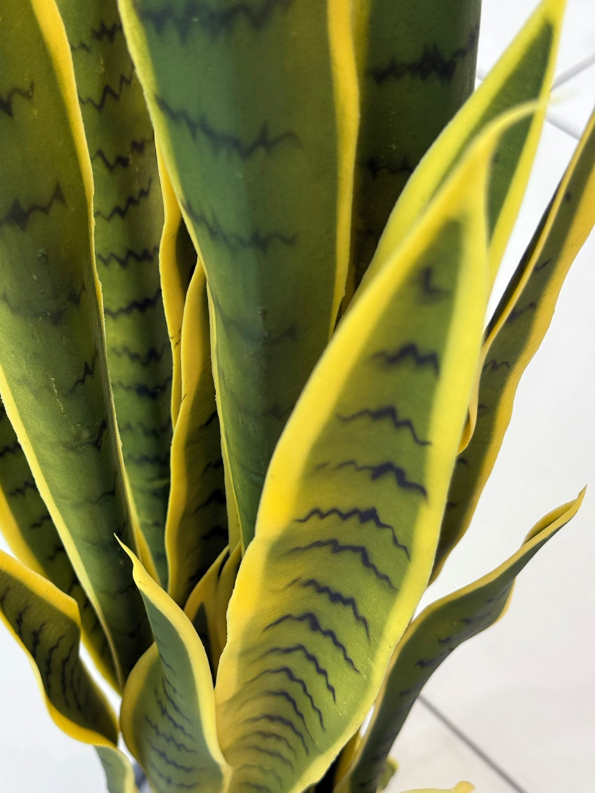Sleek, modern, and always-on-point, the faux Dracaena stands tall with its striking, sword-shaped leaves. The snake plant's upright, slender sculptural silhouette makes it a great choice for tight spaces and adds a clean and contemporary and high-impact look to any corner.